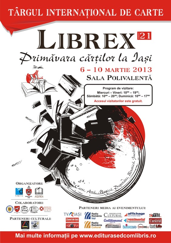În perioada 6 -10 martie 2013, la Iași, în incinta Sălii Polivalente (str. Palat nr. 2) se va desfășura ediția a XXI-a Târgului International de Carte LIBREX. Primăvara cărților la Iași.