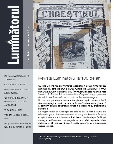 Numărul din octombrie-noiembrie 2014 dedicat împlinirii a 100 de ani de la apariția Revistei Luminătorul (1914-2014), cu mențiunea că aceasta a purtat inițial numele de Creștinul.