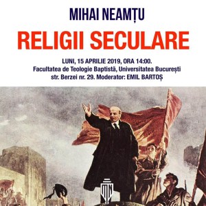 Luni, 15 aprilie 2019, la Facultatea de Teologie Baptistă din București, strada Berzei 29, Mihail Neamțu, intelectual creștin ortodox de dreapta, scriitor, politolog, va conferenția despre religiile seculare. Moderatorul întâlnirii va fi Conf. Univ. Dr. Emil Bartoș, pastor baptist și cadru didactic al Facultății de Teologie Baptistă, Universitatea din București. Conform anunțului de pe afiș, evenimentul va începe la ora 14.