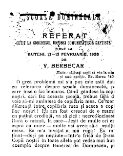 Calendarul pentru citirea Bibliei cu Lecțiunile Școalei Duminecale pentru anul 1920, cu referatul „cetit” la Congres, de către Vasile Berbecar, cel care se va ocupa în mod special de calendarele de școală duminecală, vede lumina tiparului imediat după Congres.