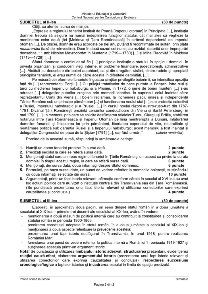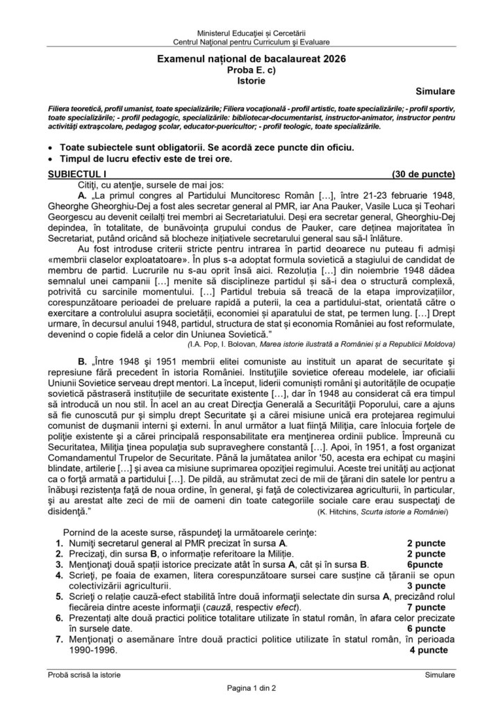 Marți, 24 martie 2026, a avut loc simularea examenului de bacalaureat la disciplina istorie