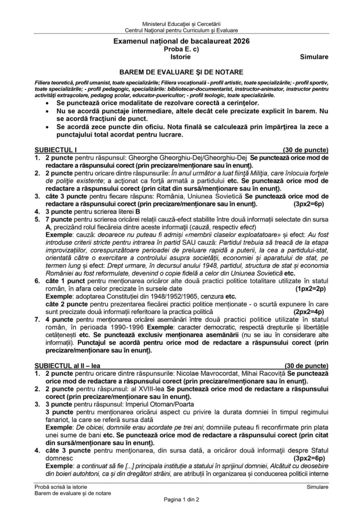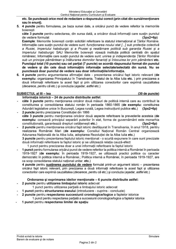 Mai jos aveți varianta dată elevilor și baremul aferent în format jpg