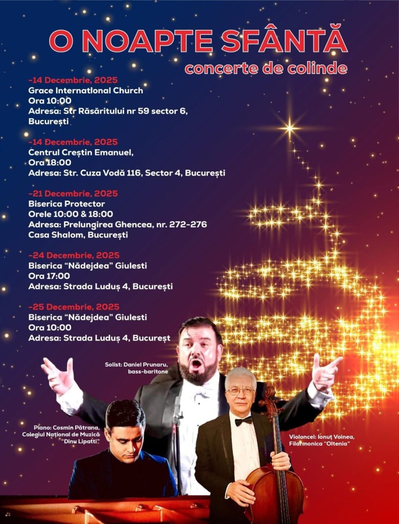 O noapte sfântă: Concerte de colinde cu bass baritonul Daniel Prunaru – Bucureşti, decembrie 2025