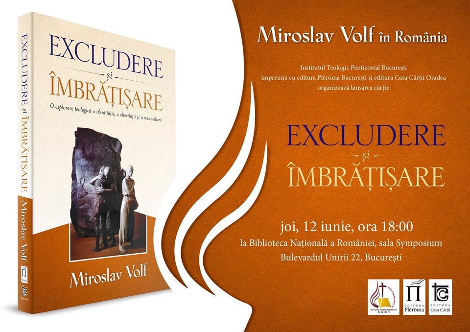 Joi, 12 iunie 2014, de la ora 18 la Biblioteca Națională a României se va lansa cartea Excludere și îmbrățișare scrisă de teologul Miroslav Volf.