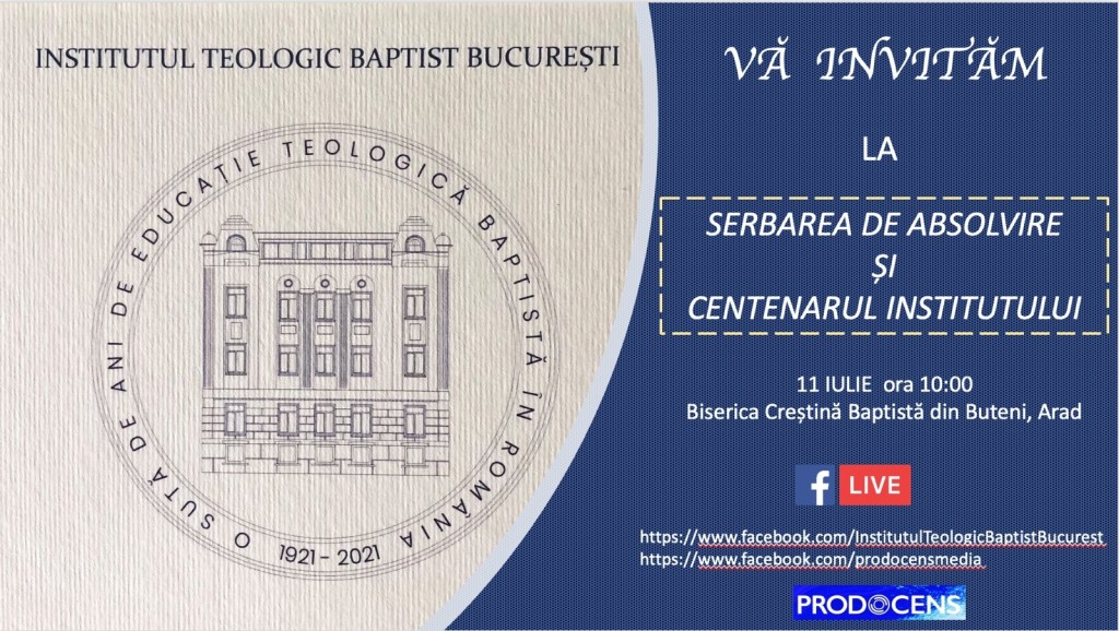 Buteni, 11 Iulie 2021 – Festivitatea de absolvire a promoției 2021 a Institutului Teologic Baptist și celebrarea a 100 de ani de educație teologică baptistă