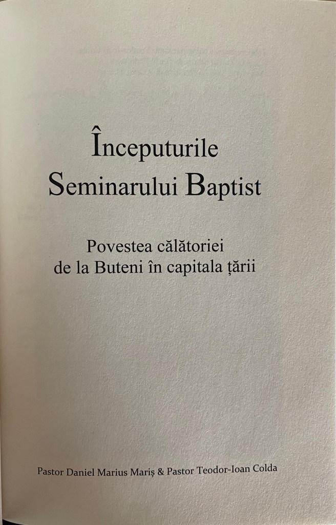 Apariții editoriale (57) – Daniel Marius Mariș, Teodor-Ioan Colda – Începuturile Seminarului Baptist: povestea călătoriei de la Buteni în capitala țării