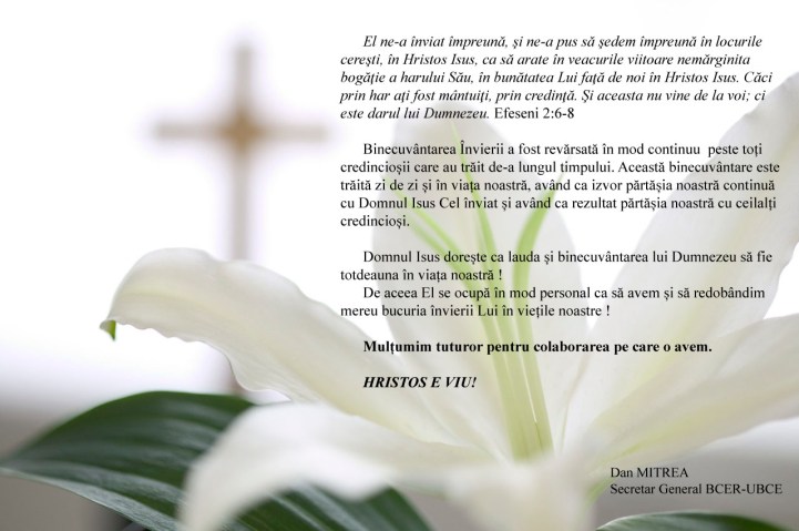 În cadrul Conferinţei Generale a Bisericii Creştine după Evanghelie cu caracter electiv, ținută astăzi, 10 octombrie 2014, în Biserica Creştină după Evanghelie Bartolomeu-Braşov, Comitetul Executiv al Uniunii este următorul:
