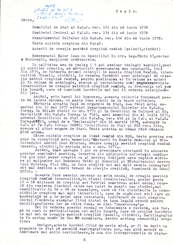 Referat avand ca obiect Memoriul lui Maier Ion privind publicarea unei ,,Antologii de creatie poetica crestina” – 1978 p.2