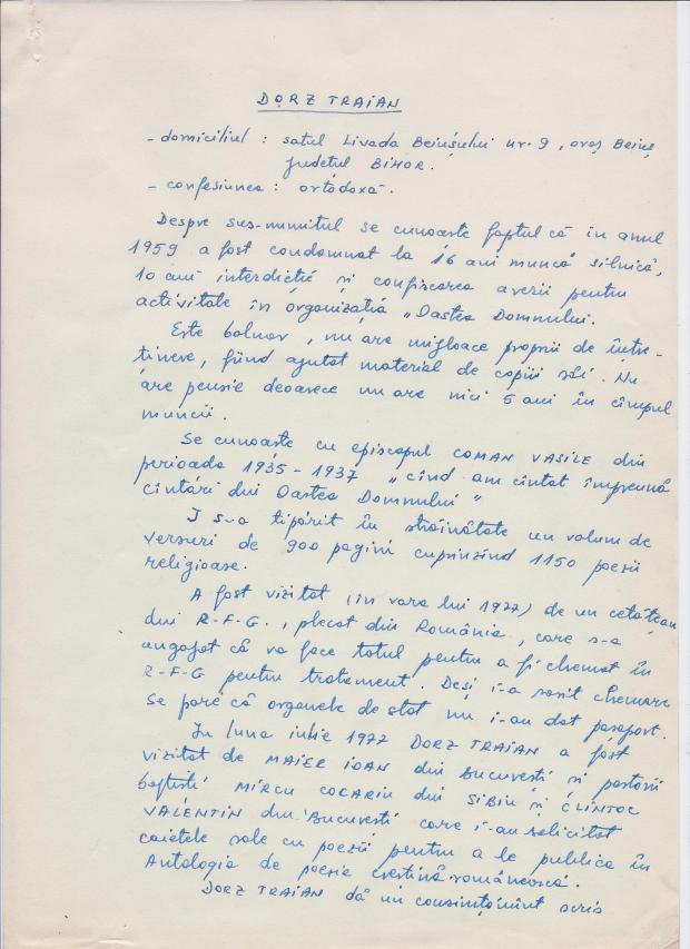 Prima parte a seriei de documente referitoare la publicarea unei antologii de ,,creație poetică creștină” care să includă și poeziile lui Traian Dorz a fost publicată sub titlul: Memoriul lui Maier Ion catre CC al PCR privind publicarea unei ,,Antologii de poezie crestina” – 1978