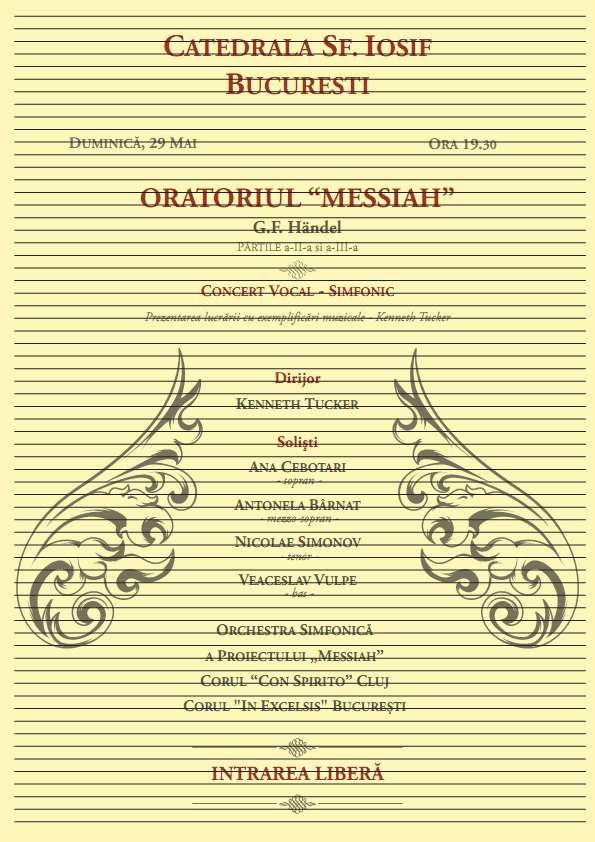 Concertul va fi susținut de corurile „CON SPIRITO” din Cluj-Napoca si „IN EXCELSIS” din București și va fi dirijat de Kenneth Tucker și Emanuel Balaceanu.