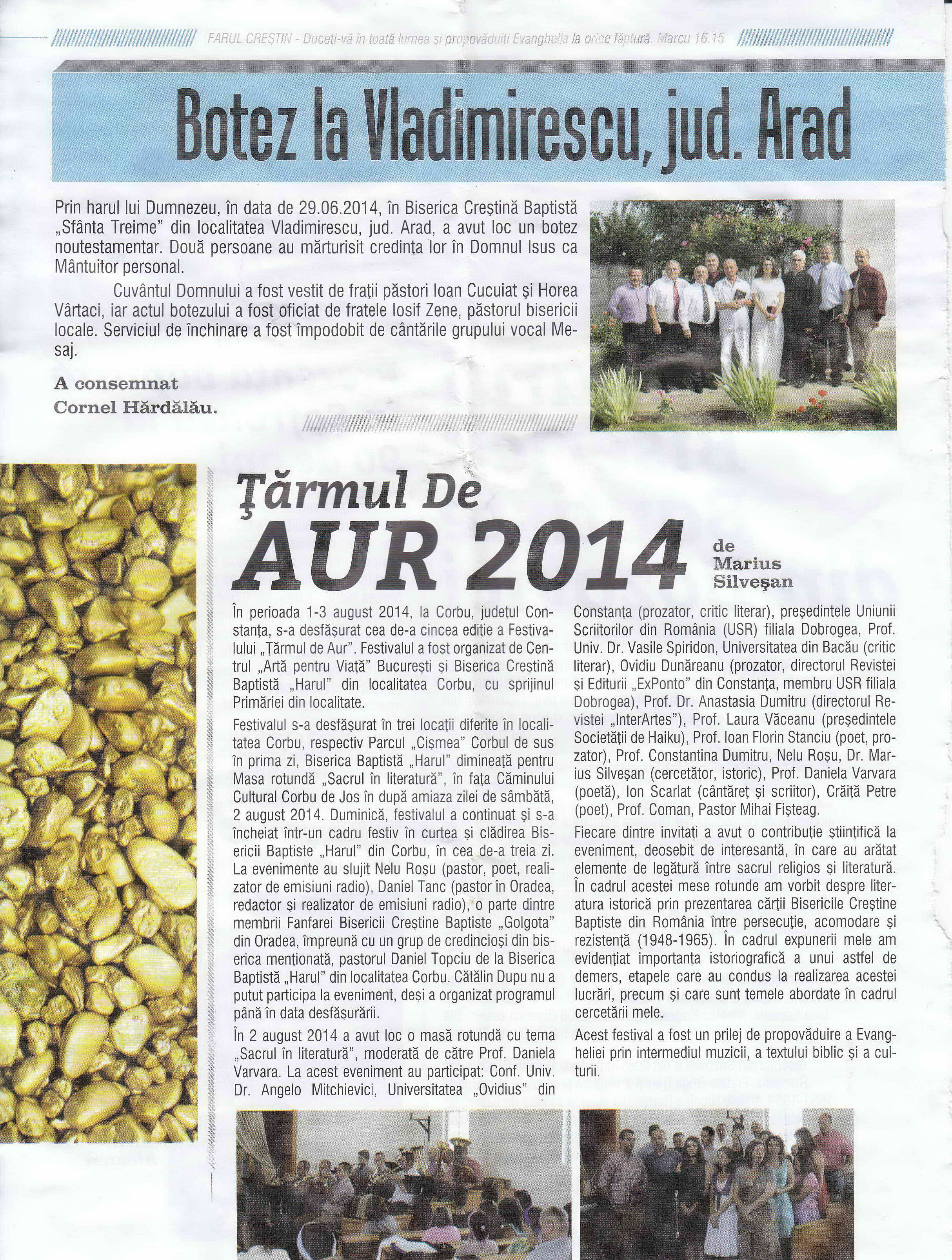 Ultimul număr al Revistei Farul Creștin are în paginile sale și un articol despre Festivalul Țărmul de Aur, ediția 2014.