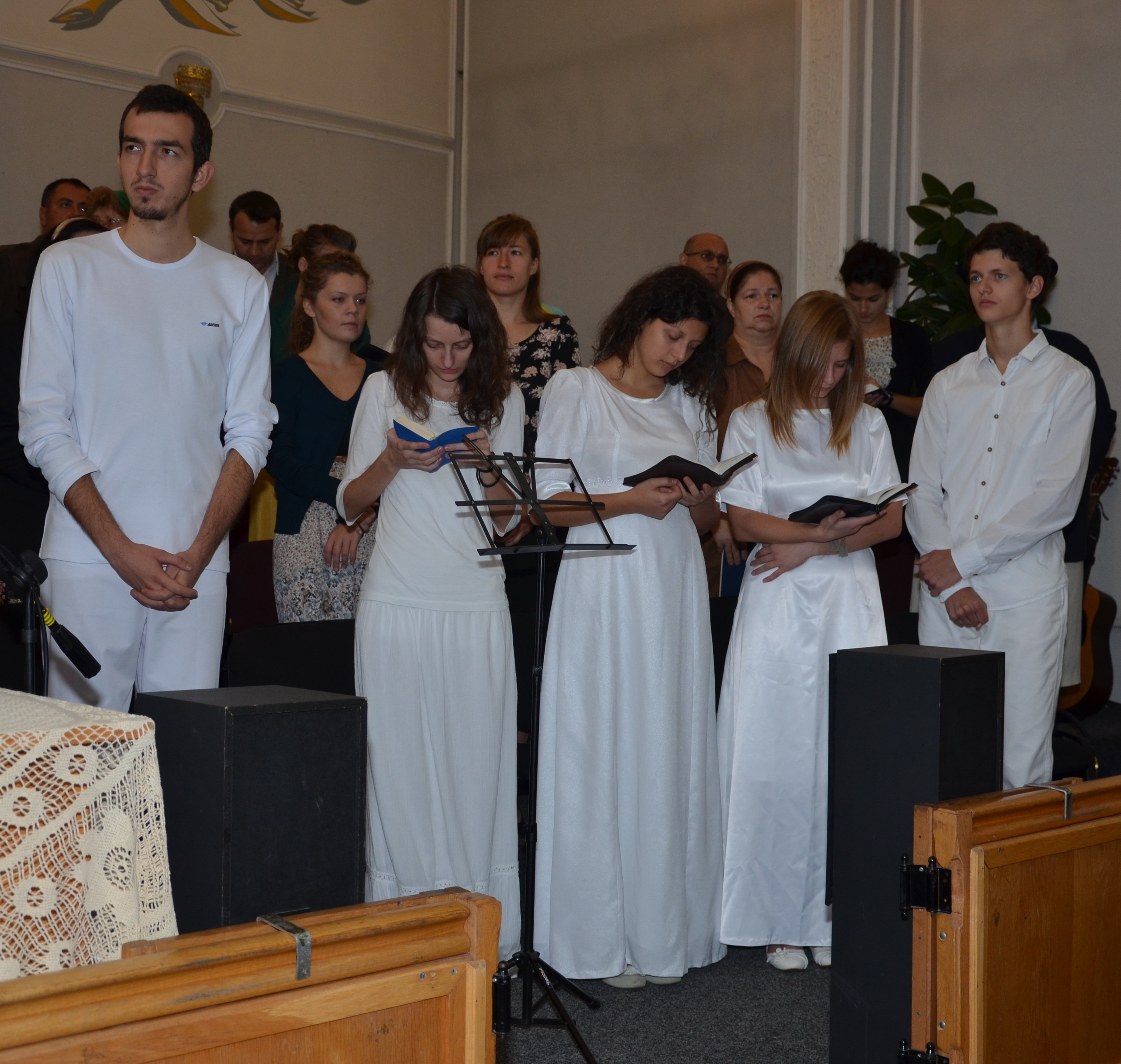 Duminică dimineața, Biserica Baptistă Nădejdea a avut onoarea să-i primească în mijlocul ei pe cinci dintre tinerii Spiritual Riveval Church care au ales să-l mărturisească pe Domnul în apa botezului.