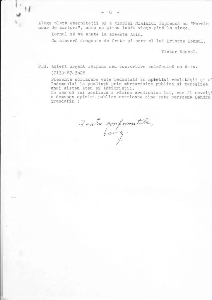 b. Scrisoarea lui Răscol Victor către Sandru Trandafir p.I