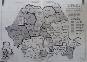 Situatia procentuala a baptistilor pe judete (1992)