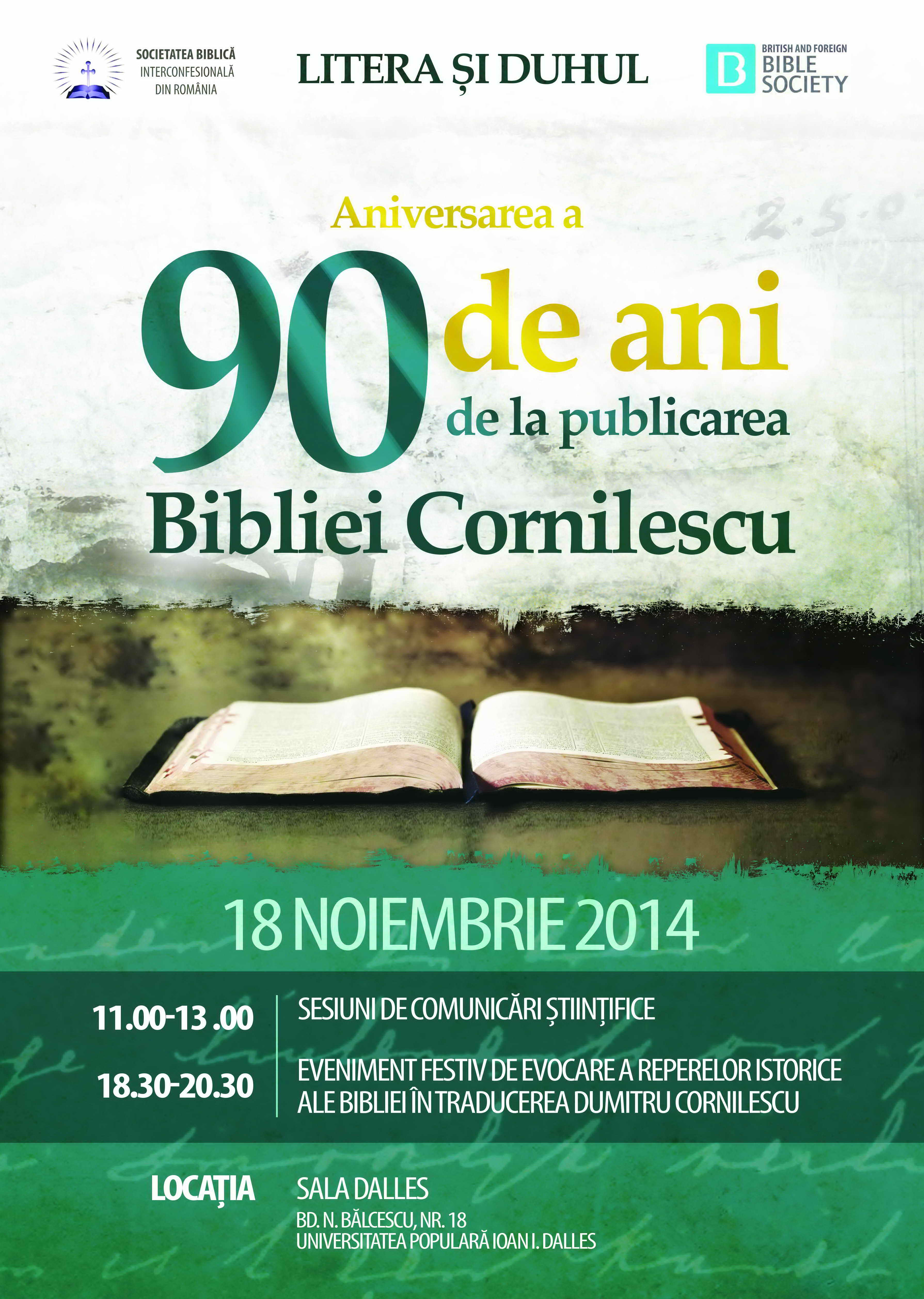 Sala Dalles București: „Litera și Duhul”. A 90-a aniversare a Bibliei Cornilescu (1924).