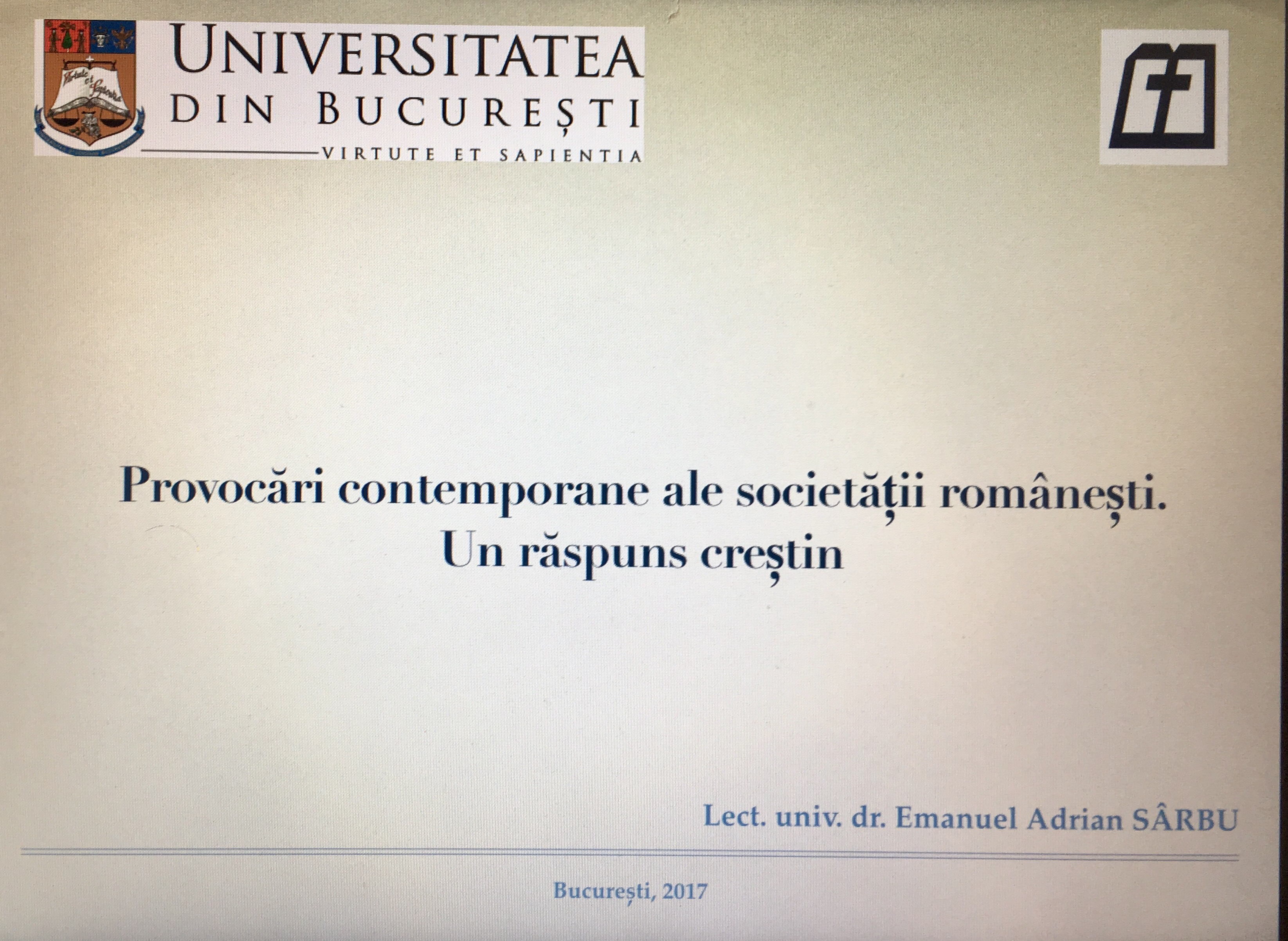 La Facultatea de Teologie Catolică, Universitatea din București, Lect. Univ. Dr. Emanuel Adrian Sârbu a susținut teza de abilitare în teologie cu titlul : Provocări contemporane ale societății românești. Un răspuns creștin.
